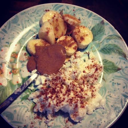 Pre-workout Snack: Three scrambled egg whites with pumpkin pie spice, 1/2 banana and almond butter