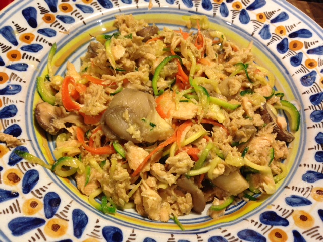 Dinner: Carrot and Zucchini Noodles with Ginger Garlic Salmon and Oyster Mushrooms